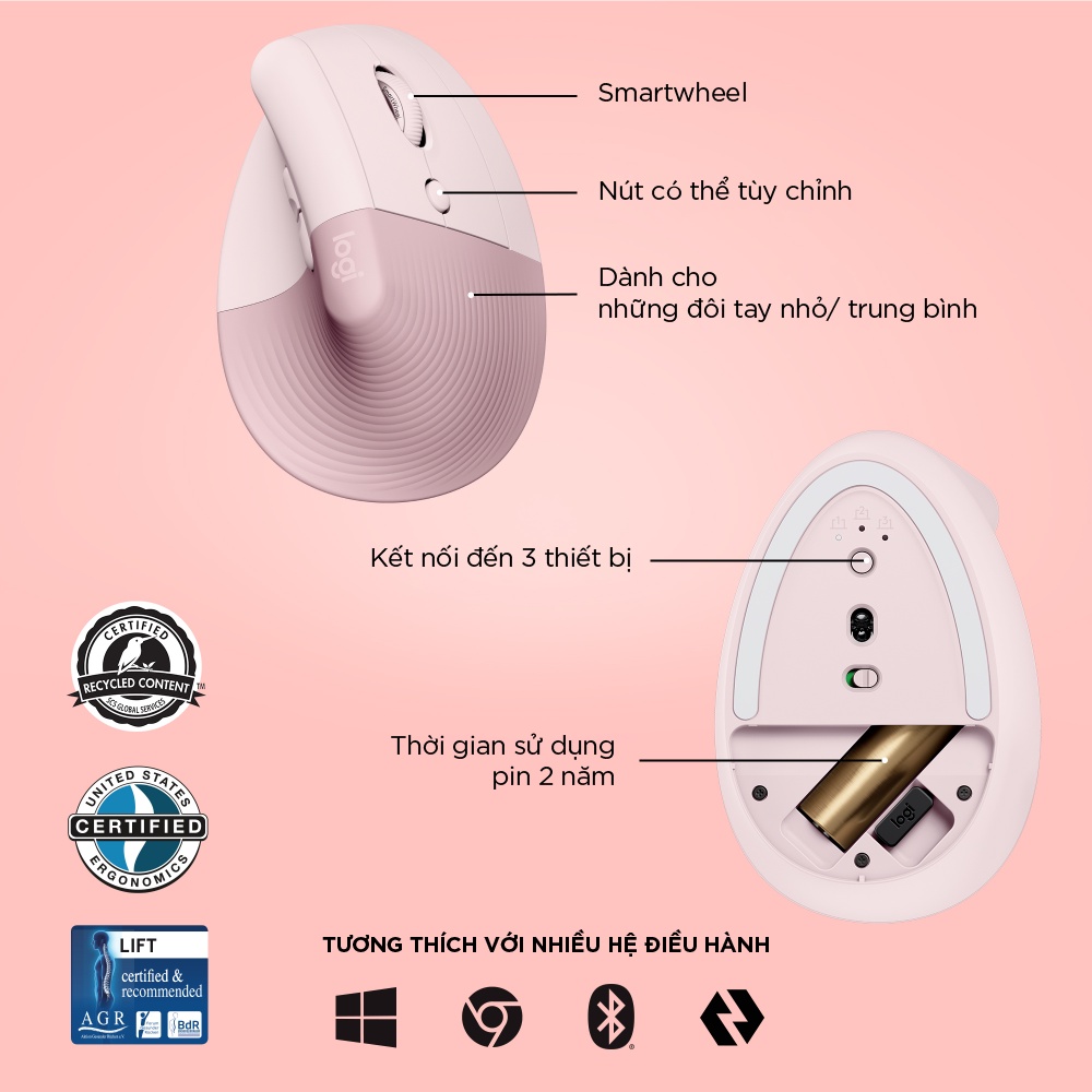 – Được chứng nhận công thái học: Chuột không dây Lift Vertical được thiết kế, phát triển, thử nghiệm và phê duyệt theo tiêu chí do những nhà công thái học hàng đầu đề ra.