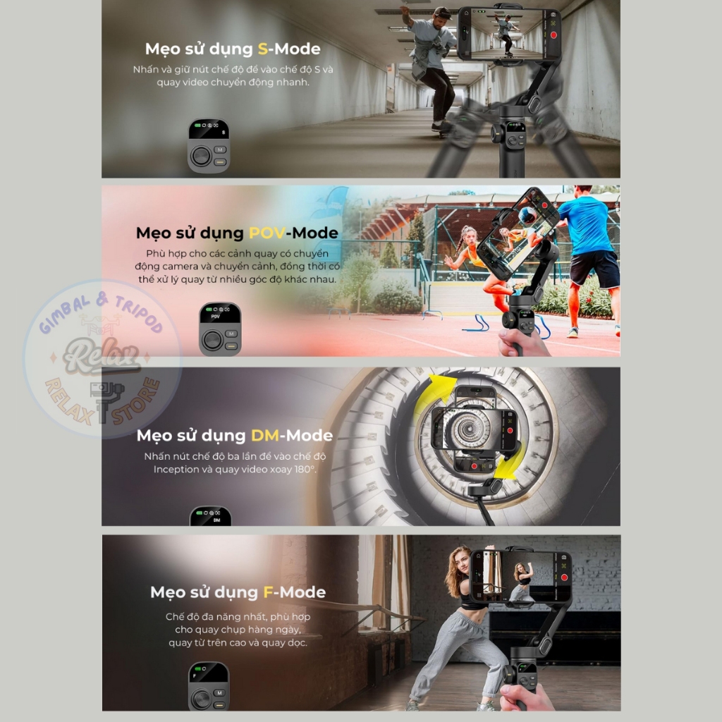 🔄 Full Follow Mode: Gimbal sẽ xoay linh hoạt theo mọi chuyển động của bạn, giúp quay video tự nhiên và không bị hạn chế.