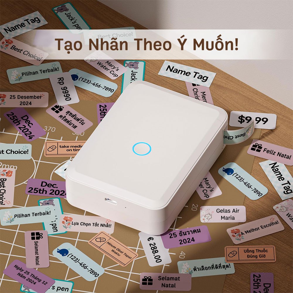 Hỗ trợ tất cả các định dạng nhãn chính: giá, ngày, kích thước, trọng lượng, tên, v.v.