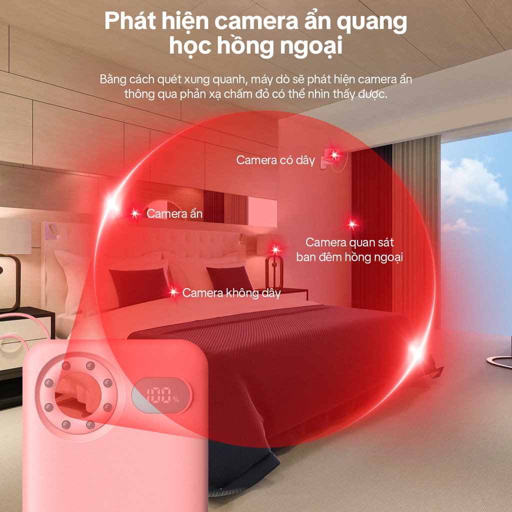 Phát hiện máy ảnh chính xác: Với đèn cảm biến hồng ngoại hiệu suất cao 8 chiếc, ống kính lọc quang học chống gián điệp và bật ổn định & Chế độ ánh sáng nhấp nháy, pin dự phòng có thể phát hiện chính xác các camera ẩn bằng cách quét môi trường xung quanh và để lộ chúng thông qua phản xạ chấm đỏ có thể nhìn thấy, bảo vệ sự riêng tư của bạn.