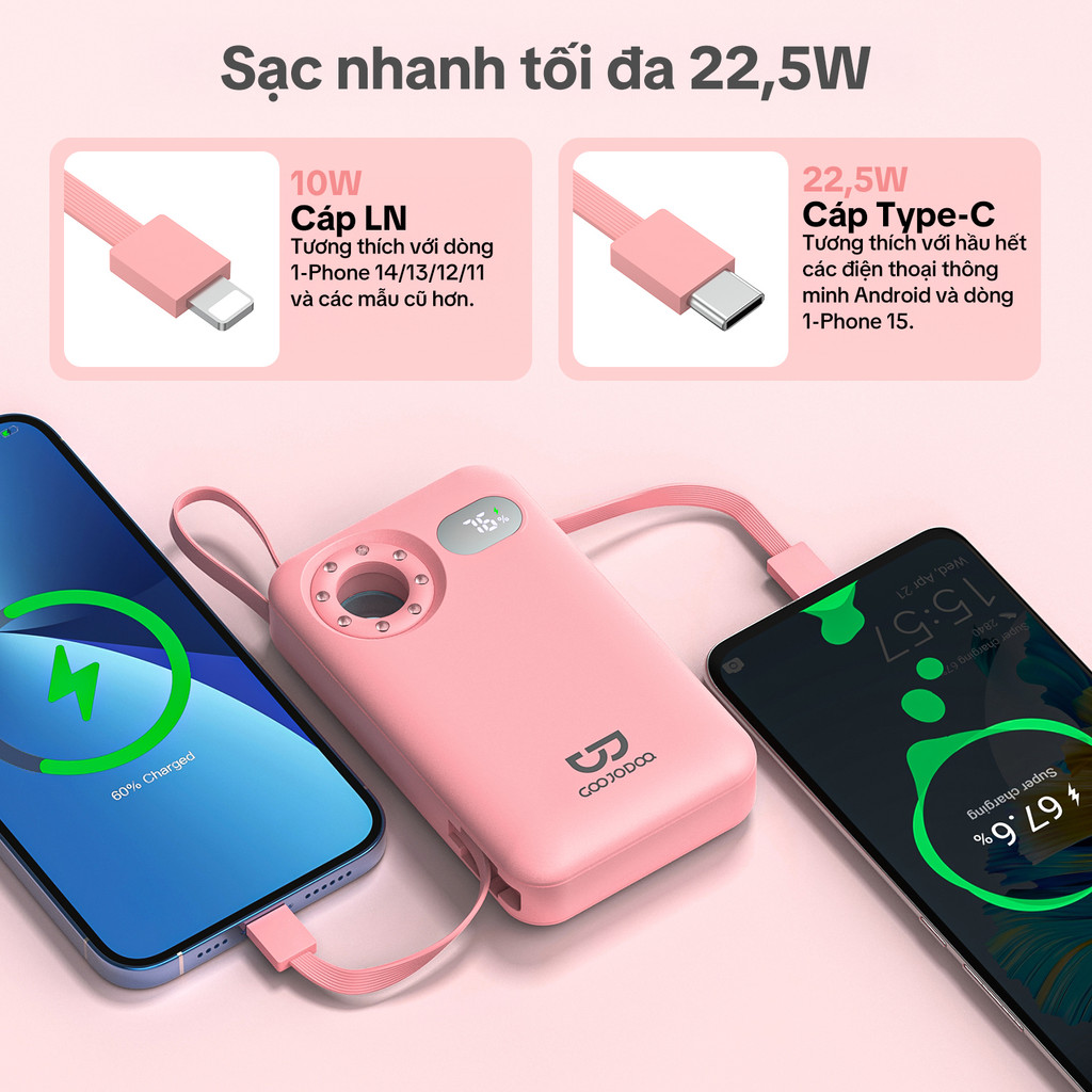 GOOJODOQ 10000mAh Có Dây PowerBank Phát Hiện Camera Sạc Nhanh